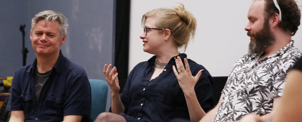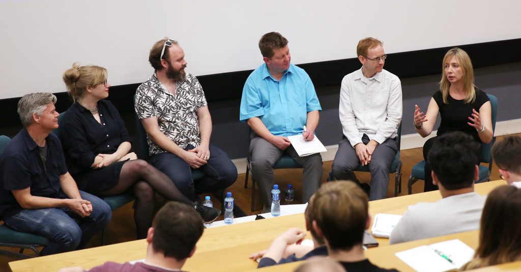 The Panel L-R: Paddy Eason, (VFX Supervisor); Jen Handorf (Producer); Dan Martin (SFX Artist): Saint Walker (Chair); Keith M. Johnston (Academic, UEA); Sheila Wickens (VFX Supervisor DNEGTV).